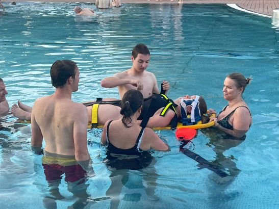 Am Montag, dem 18. August, trafen sich mehr als 30 Einsatzkräfte und Interessierte von unserer Ortsgruppe und der Ortsgruppe Karlsbad sowie von den DRK-Ortsvereinen Etzenrot und Spielberg zu einem gemeinsamen Übungsabend bei uns im Freibad. Zum Thema „Spineboard im Wasser“ wiederholten wir zunächst die korrekte Nutzung eines Spineboards, einer speziellen Trage bei Wirbelsäulenverletzungen, an Land. Da jede Ortsgruppe ihr eigenes Spineboard mitgebracht hatte, konnten wir mit einer Vielzahl an verschiedenen Systemen üben. Anschließend wechselten wir ins Wasser und übten dort die Rettung von Patienten aus flachem und tiefem Wasser mithilfe eines Spineboards oder eines Tragetuchs. Nach dieser erfolgreichen Übung ließen wir den Abend noch bei einem gemeinsamen Grillen im Freibad ausklinge ... Mehr erfahren