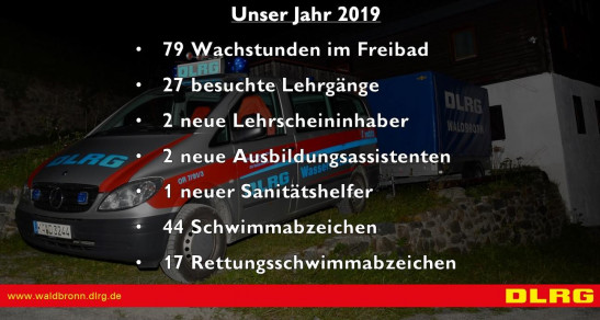 2019 war ein erfolgreiches Jahr. Wir konnten nach einem Rettungsschwimmkurs insgesamt 17 Rettungsschwimmabzeichen verleihen, haben gleich zwei neue Lehrscheininhaber in der Ortsgruppe und waren insgesamt auf 27 Lehrgängen, die meisten davon im Bereich Ausbildung und Medizin. Auch einen neuen Sanitätshelfer durften wir in unseren Reihen begrüßen. Ebenfalls veranstalteten wir in diesem Jahr erstmals eine kleine Sanitätsübung mit neu erworbenen Fähigkeiten im Bereich der realistischen Unfall- und Notfalldarstellung. Zudem haben wir 2019 mit 79 ehrenamtlich geleisteten Wachstunden einen Beitrag zur Sicherheit im Waldbronner Freibad geleistet. Neben unseren traditionellen alljährlichen Aktivitäten wie Anbaden, Erster-Mai-Treff, Freibadla ... Mehr erfahren